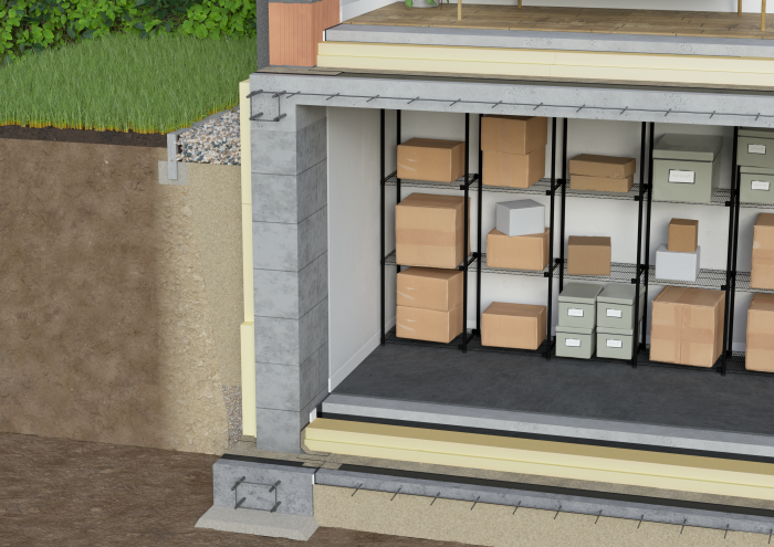 W środowisku o podwyższonej wilgotności, przy wysokim poziomie wód gruntowych lub w strefach narażonych na przemarzanie zdecydowanie lepiej sprawdzą się płyty swissporXPS 300, które charakteryzuje bardzo niska nasiąkliwość i wysoka wytrzymałość na ściskanie. Materiał ten jest szczególnie rekomendowany do izolacji pionowej ścian fundamentowych i ścian piwnic mających kontakt z wilgotnym gruntem, a także jako warstwa termoizolacyjna pod płytami fundamentowymi, gdzie występują duże obciążenia użytkowe. Należy jednak pamiętać, że w przypadku wód infiltracyjnych spiętrzających lub napierających płyty te mogą być stosowane do głębokości maksymalnie 3,5 m.